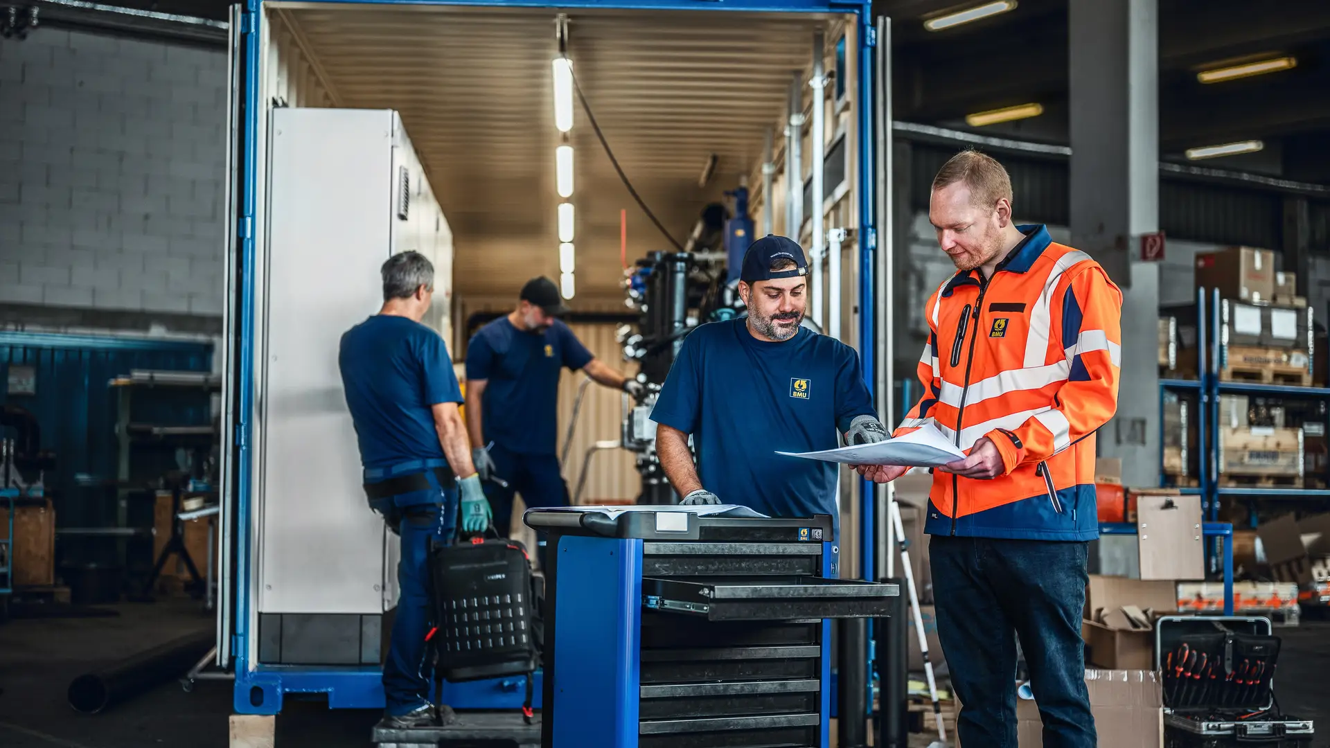 The team led by Site Manager Harald Huebner supervised the project from the start and took care of preparing the construction area on site. After construction of the floor plate, the groundwater treatment plant was brought to the site in more than 15 truckloads. After arriving at their destination, the equipment components were lifted to the defined setup area using a 100-ton crane. Step by step, the various equipment components were then positioned: The filters were filled with gravel and activated carbon, the well pumps were installed, and pipes and wires were laid for the entire plant. In November 2024, it was finally time: The plant began operation. To celebrate this milestone, a press event was also held to inform the public and the media about the project.